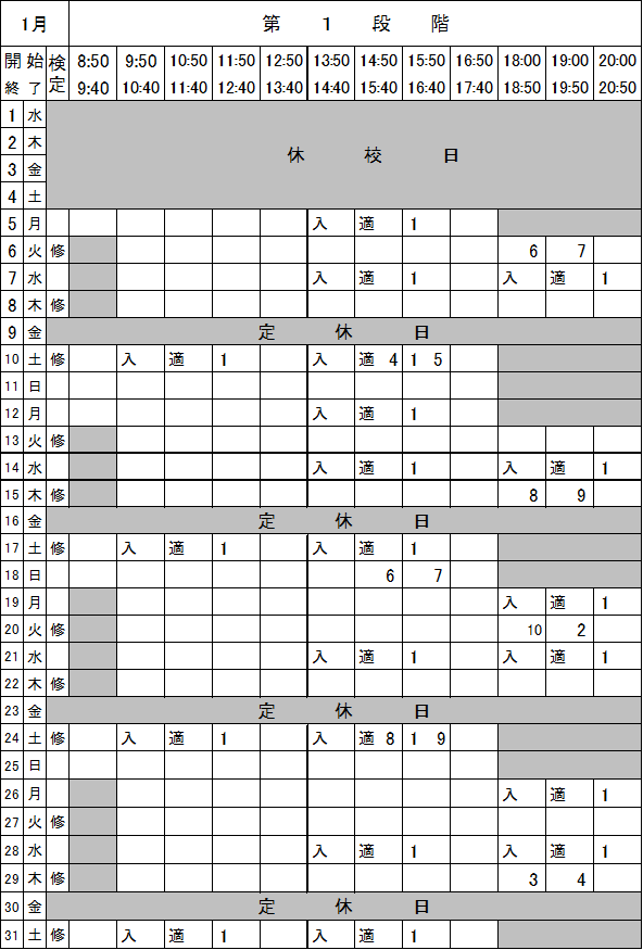 1月第1段階学科