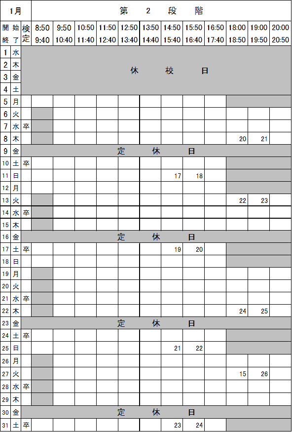 1月第2段階学科